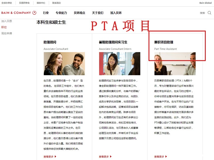 知名公司(尤其是咨询、投行类)确实都有自己的PTA项目,一般在其官网上都会有公告(例如贝恩公司官网):