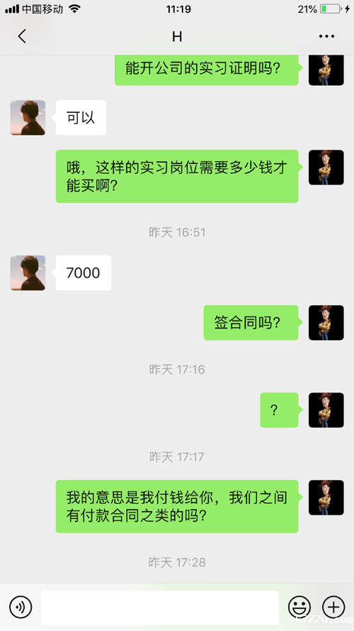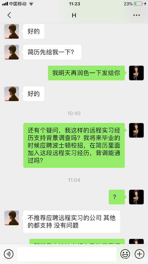 以下附网友向我们举报的安永离职员工冒充安永招募“远程实习”的微信聊天截图: